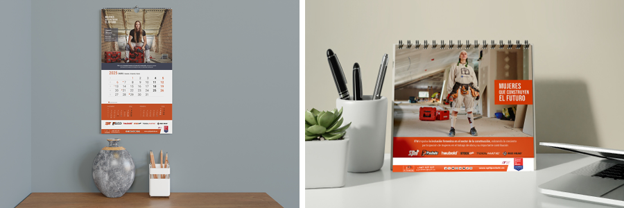 El calendario es un elemento mucho más duradero y por eso hemos querido que el eslabón de la cadena que consideramos de mayor importancia para la integración de la mujer en el sector de la construcción, las instaladoras y profesionales de la obra, fueran las protagonistas de este. Todo el año las veremos, dando ejemplo que hoy no hay excusa para descartar una mujer en la obra, y más aún, cuando la mano de obra cualificada escasea. No sólo debemos enamorar a los jóvenes, los cuales representan un 15%, también debemos hacerlo con las mujeres, las cuales representan poco más del 50% de la población española.