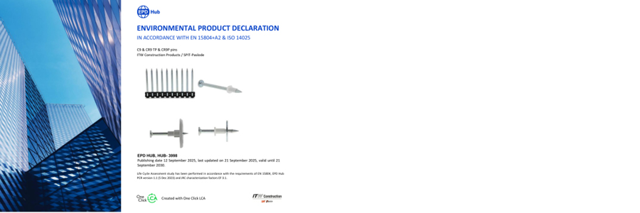 Los documentos EPD están disponibles en la EPD Hub Global Library https://www.epdhub.com (buscando “SPIT” o “ITW”), así como en la sección de descargas técnicas de nuestras páginas web. Para mayor comodidad, también los adjuntamos junto con este comunicado.