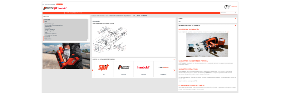 Tras más de dos años de intenso trabajo por parte de nuestro equipo de IT y de Post Venta, acabamos de poner en línea una web con todos los explosionados y detalle de los recambios de todas nuestras herramientas actuales y gran parte de las ya descatalogadas en los últimos 20 años, de nuestras marcas SPIT, PASLODE, STOCKade, HAUBOLD y TOOLMATIC.