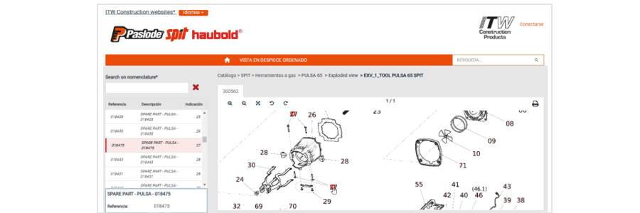 En la web, de rápida y sencilla consulta, podrá ver el explosionado, aumentar o reducir el tamaño de la vista, ver la lista de recambios en los que se divide la herramienta, identificarla rápidamente con un simple clic.