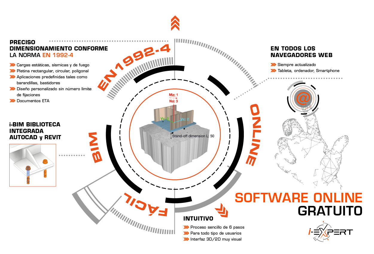 Seja um profissional da construção, arquiteto ou engenheiro, o SPIT i-EXPERT oferece assistência segura e confiável durante a concepção e implementação dos seus projetos. O software de cálculo de fixação mecânica e química 2D/3D está disponível online gratuitamente para todos os tipos de navegadores e meios de consulta na web (computador, telemóvel ou tablet). Com base nos padrões Europeus atuais, este software atende a todos os requisitos, como Eurocode 2 EN 1992-4, em relação a cargas estáticas, sísmicas e de incêndio.